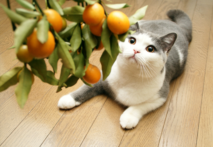 金柑を初めて見る ゆきちやけど、そんなに興味はないみたい。