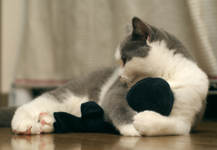 実は・・・靴下を春夏から秋冬に衣替えしたタイミングで洗濯済みのいらない靴下を出してもらったんやけど、だんな曰く洗濯してるしただ捨てるのももったいないと思ったらしく、ゆきちのおもちゃにしたらしいのです苦笑