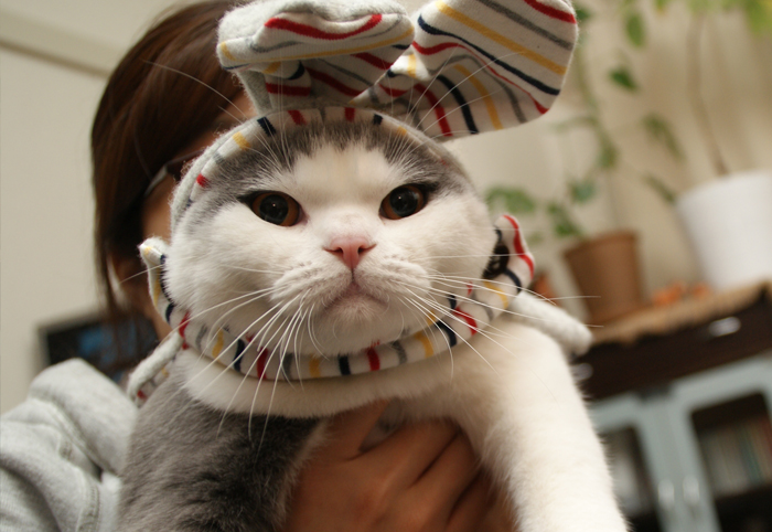 このうさぎの被り物は、不恰好ながらも私の手作りです・・・(;´ω`)