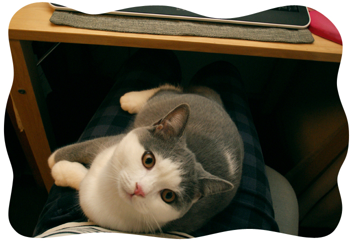 だんなはいつも、わたくし ひぃの膝猫のゆきちが うらやましいとぼやいとったのです。