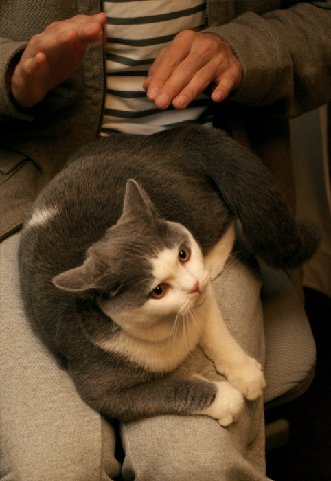 今日は念願の膝猫で鼻の下がのびる(*´T`*)だんな