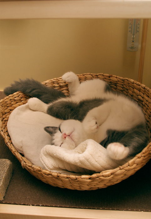 今シーズン初めての暖房とはいえ、もうちょっと猫らしく丸くなってほしいものです。