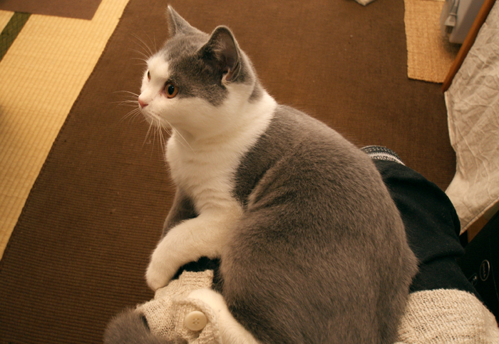 今日も今日とて起きたら早速、PCに向かうひぃの膝に飛び乗るゆきち・・・