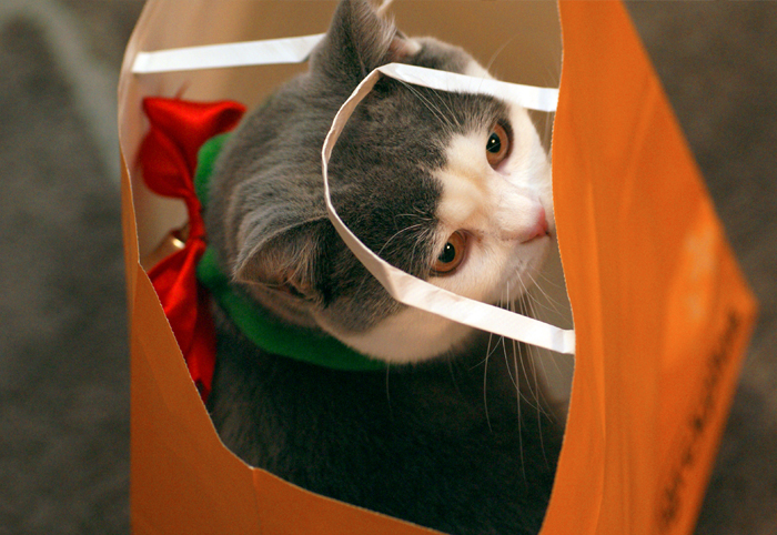 ほかのどんな形の袋よりも、ケーキの紙袋への食いつきっぷりは半端じゃありません。。