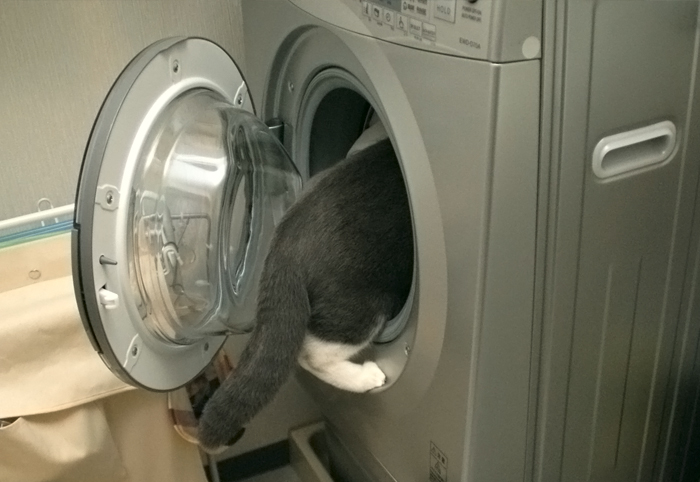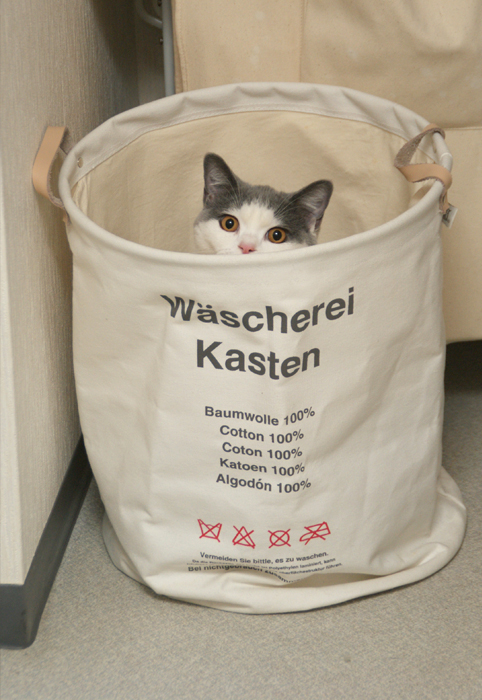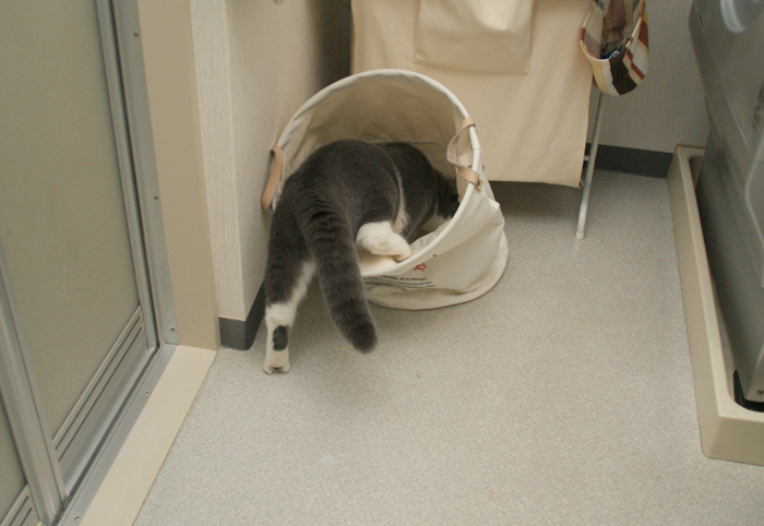 そして、いつもは洗濯物が入ってて入れないランドリーボックスに、なぜか慎重に入る・・・汗