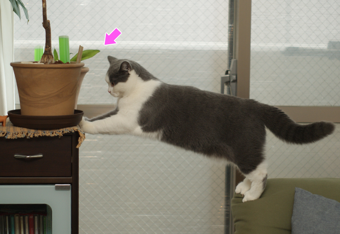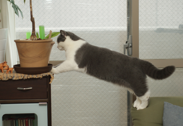 ネコの手の届かないところに植物を置かなければならないのは重々分かってはいるんですが・・・