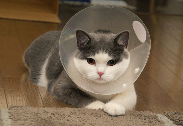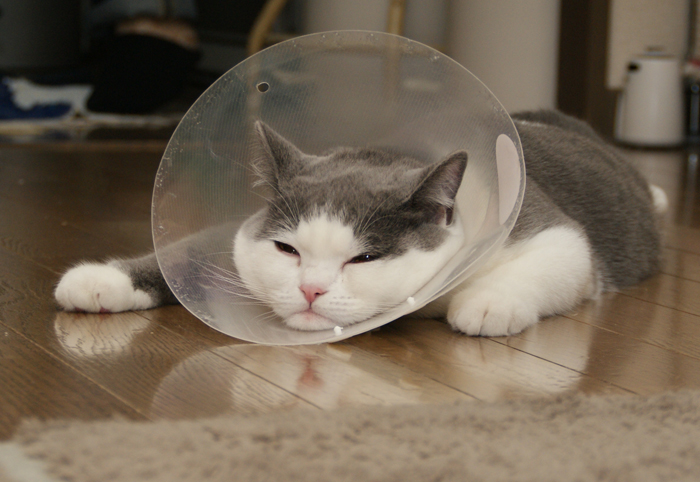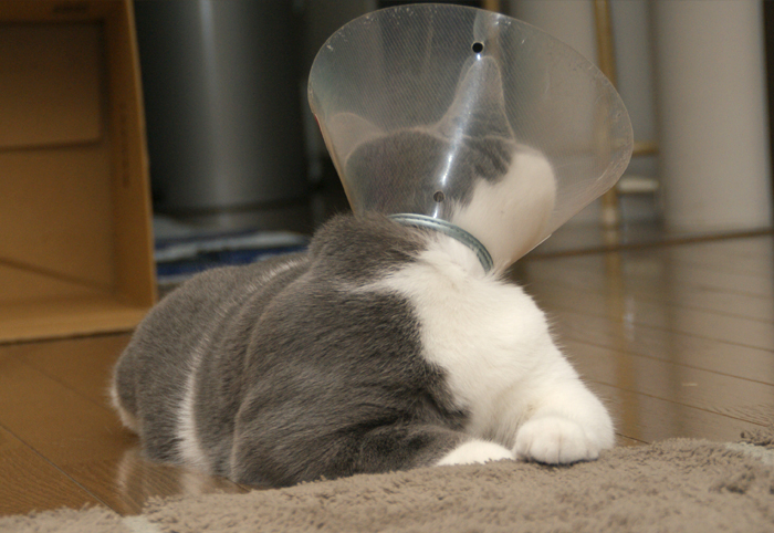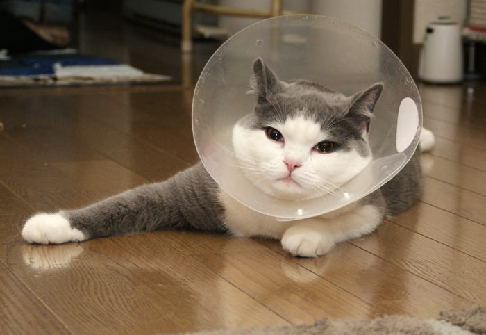 一世一代の去勢手術からエリザベスカラーを携えて無事帰ってきた ゆきち。