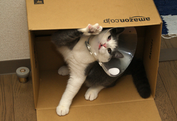 でも、エリザベスカラーの存在は大きく、遊んでる最中エリザベスを再度認識。